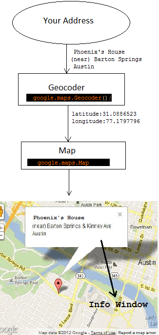 The idea behind google map from address is simple.It is based on reverse geocoding google map.I am using google map v3 api.